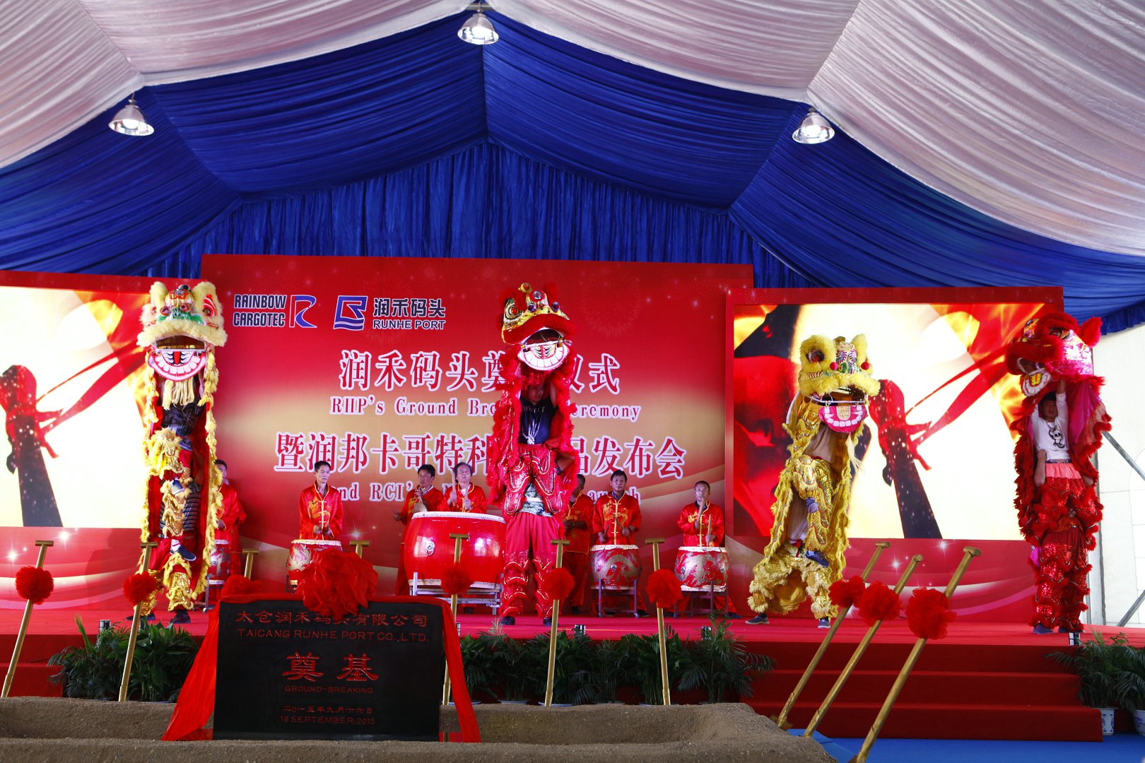 The ground breaking ceremony is attended by members of the Board of Cargotec Corporation together with representatives of Rainbow Heavy Industries, RCI, Kalmar, Taicang Runhe Port, as well as guests of Taicang government and local media. The event is hosted by Taicang Runhe Port Company (RHP), a holding subsidiary of RCI.