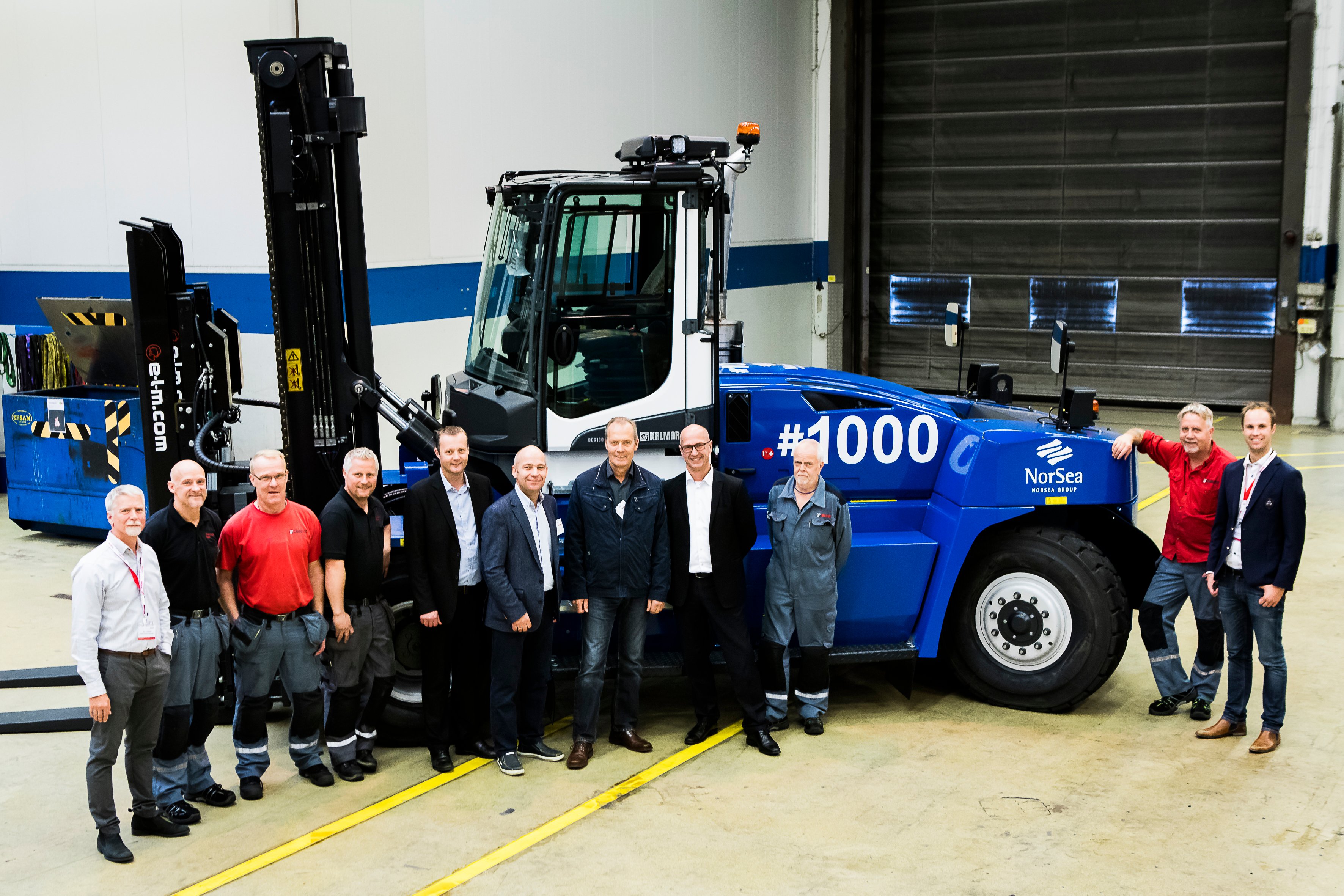 "It is very special for us to deliver the 1,000th Kalmar DCG90-180 forklift to NorSea. Our relation goes back many years, and NorSea has been a loyal customer of both Kalmar forklifts and reachstackers," said Thomas Malmborg, Vice President, Forklift Trucks at Kalmar.
