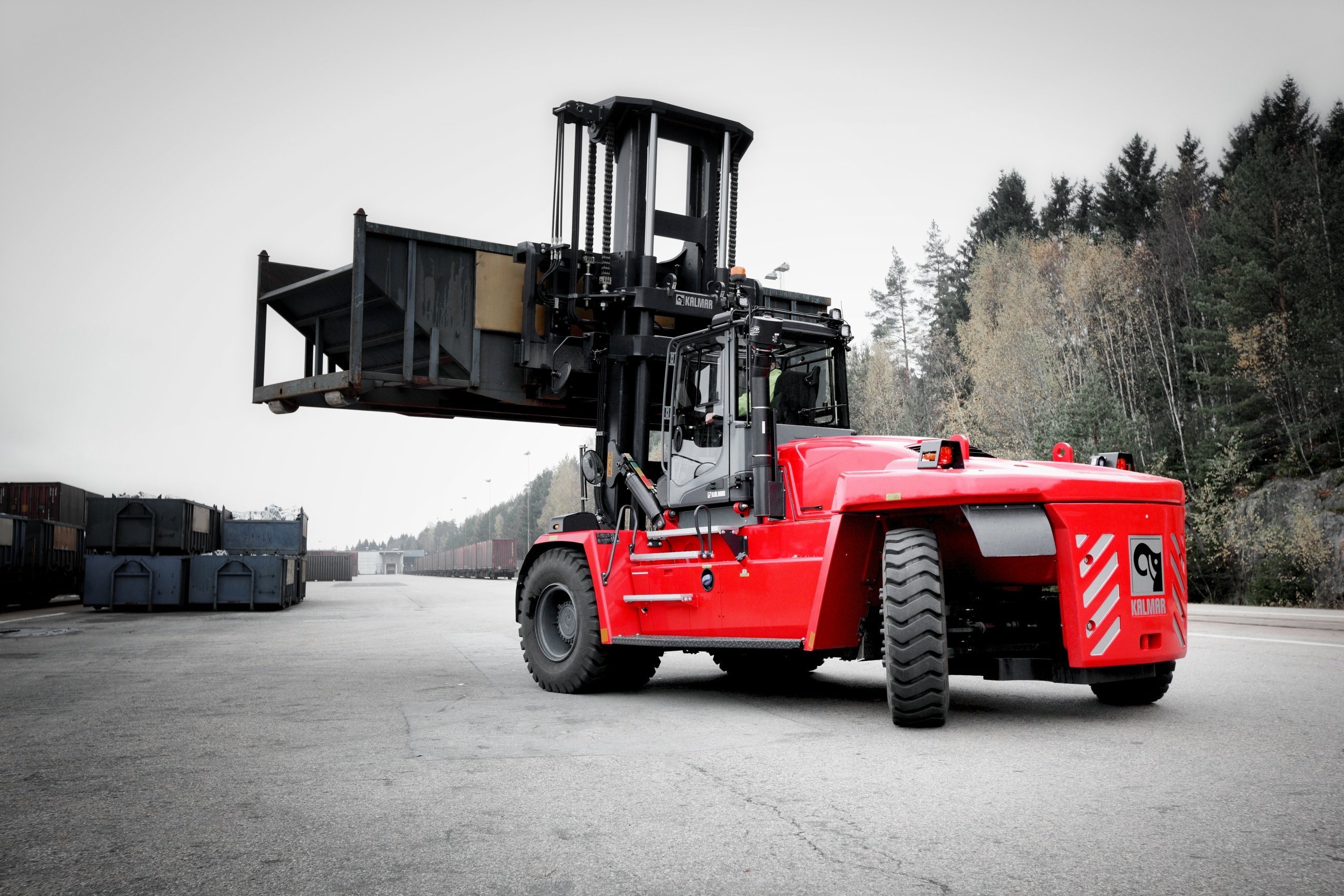 With this heavy forklift truck, Kalmar has responded to customers' increasing demands for enhanced safety, higher levels of performance and lower operating costs.The EGO cabin provides the operator with exceptional visibility, low noise levels and intelligent ergonomics, representing one of the most user-friendly environments currently available.