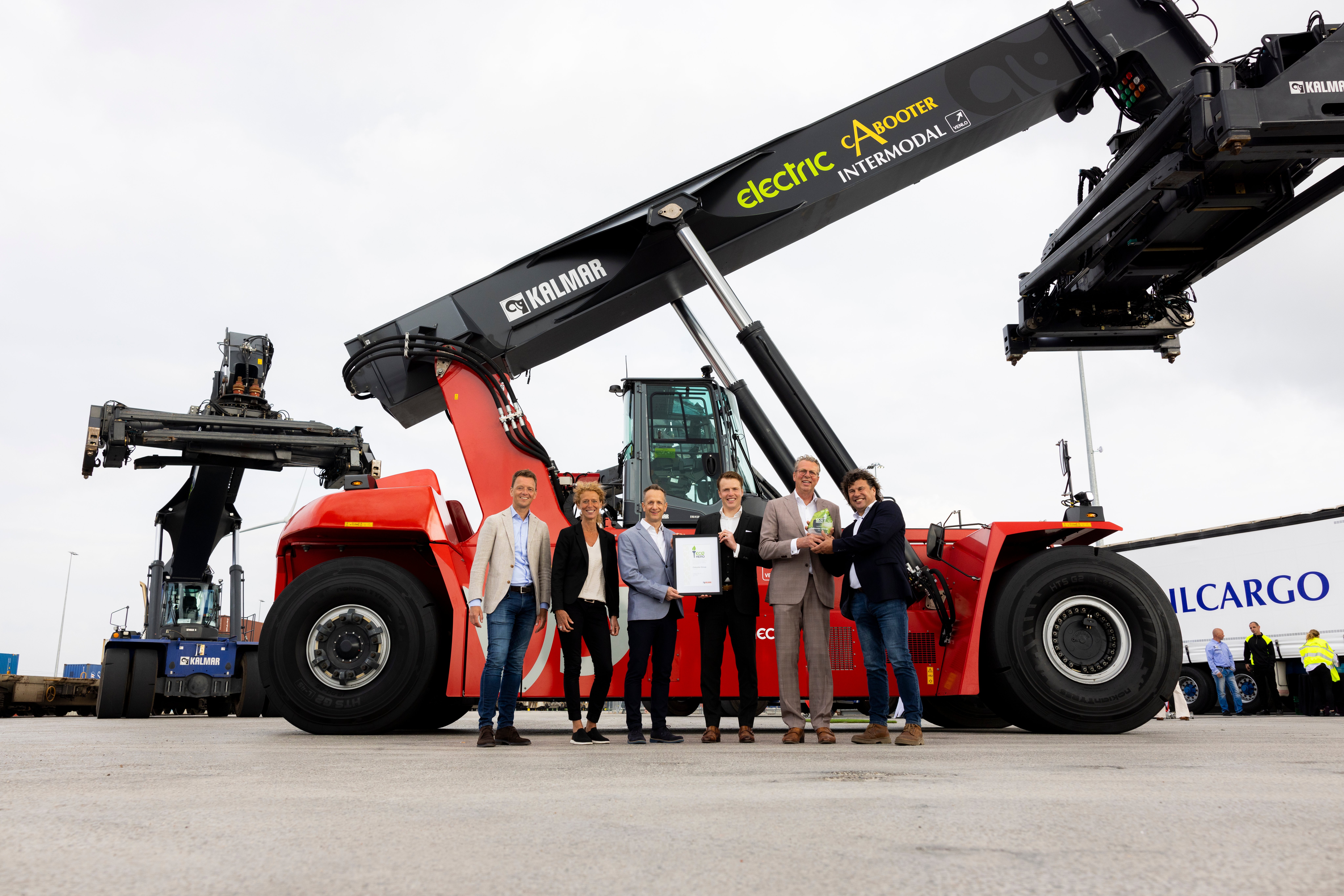 As part of the handover ceremony, Cabooter Group was presented with the Kalmar Eco Hero Award in recognition of its commitment to adopting sustainable electrically powered equipment. As an Eco Hero, Cabooter is recognised as an ambassador for sustainability, leading and inspiring other customers to follow in their footsteps by sharing their experiences of operating electrically powered machines.
